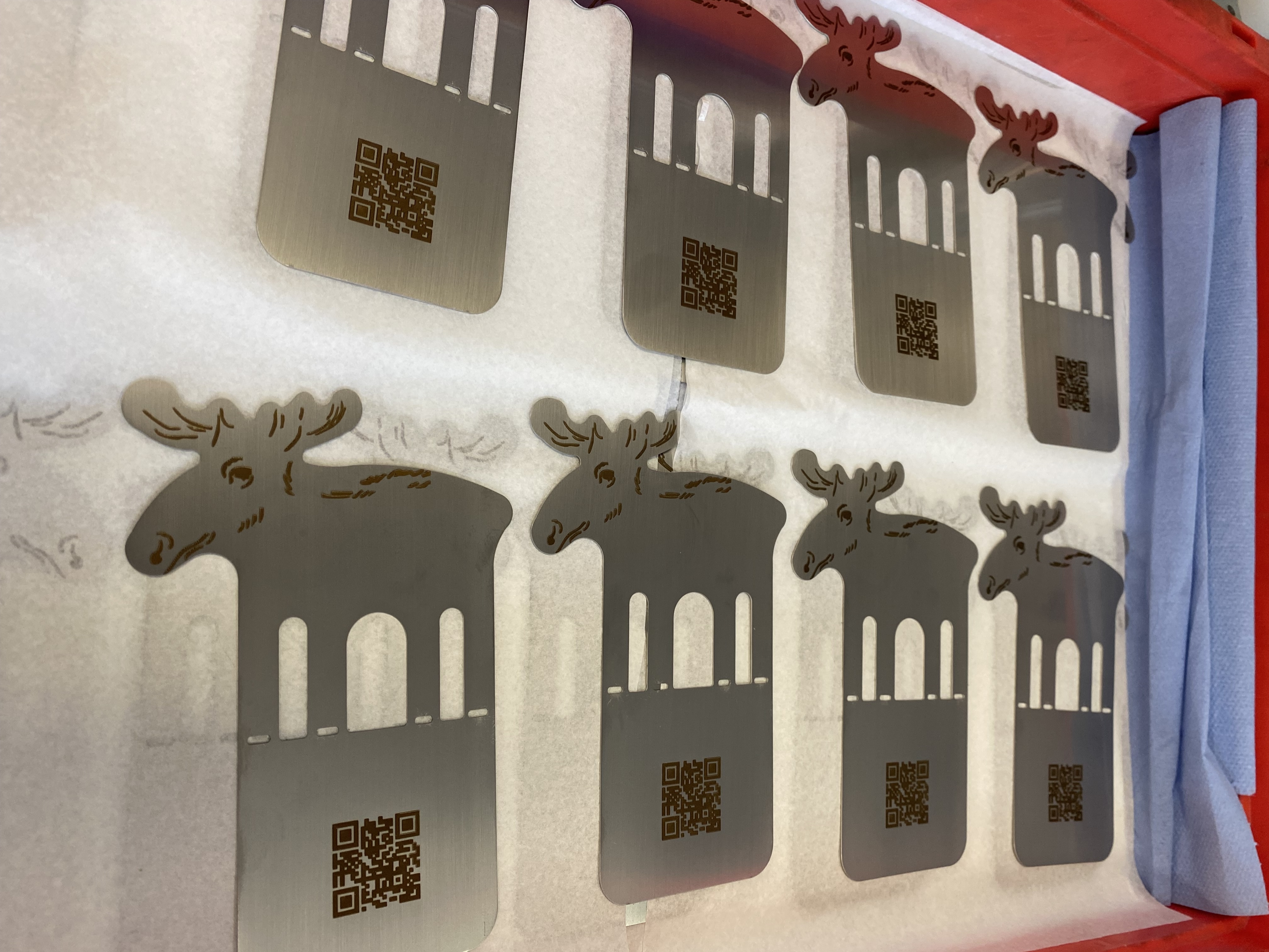 Jeder Elch-Teelichthalter wird im Schilderwerk der Schnürle industries gmbh nach modernen Fertigungsmethoden produziert: Zunächst wird das Grundmaterial, hochwertiger Edelstahl, ausgewählt und gründlich aufbereitet. Die Oberfläche wird gebürstet, was dem Edelstahl einen eleganten, matten Glanz verleiht. Durch Lasergravur entstehen die feinen Konturen und Details im Fell. Sie verleiht dem Produkt sein unverwechselbares Finish und betont die hochwertige Verarbeitung. Auch der QR-Code auf der Rückseite wird im selben Arbeitsgang lasergraviert. Danach werden der Boden für das Teelicht und die Schrift mit zwei verschiedenen Pressen geprägt Anschließend werden die fertigen Elch-Teelichthalter sorgfältig gereinigt und verpackt. Das Ergebnis ist ein dekorativer Teelichthalter, der modernes Design und handwerkliche Qualität made in Germany vereint. Er bringt nicht nur in der Weihnachtszeit eine gemütliche Stimmung ins Zimmer. Mehr über unsere Fertigungsverfahren erfahren Sie hier: